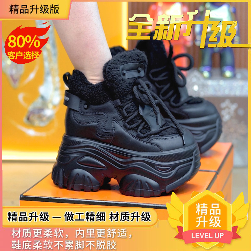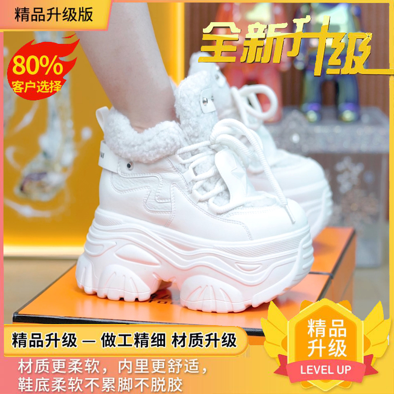 轻便百搭增高毛毛鞋 新款 女2025冬季 9cm小个子加绒厚底高帮老爹鞋