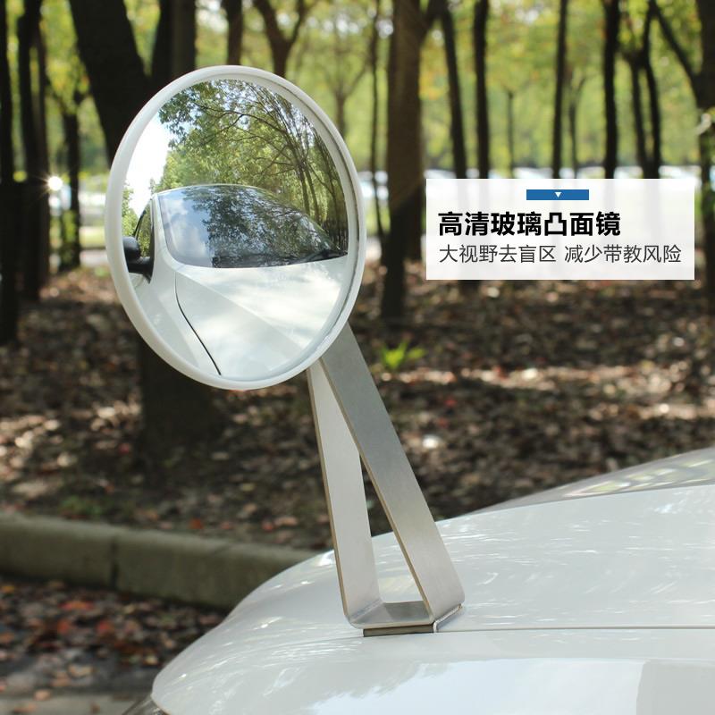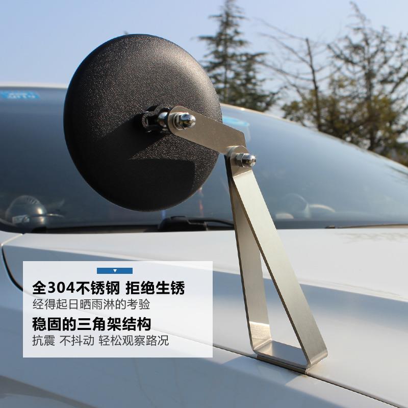 教练车盲区辅助副后视镜凸面广角大视野车头前加装 小圆反光支架镜