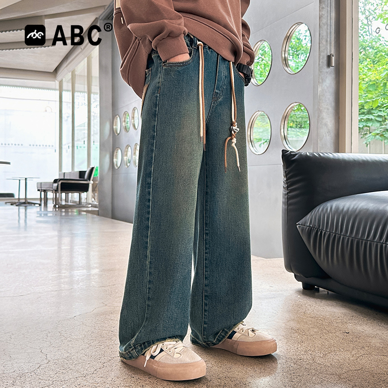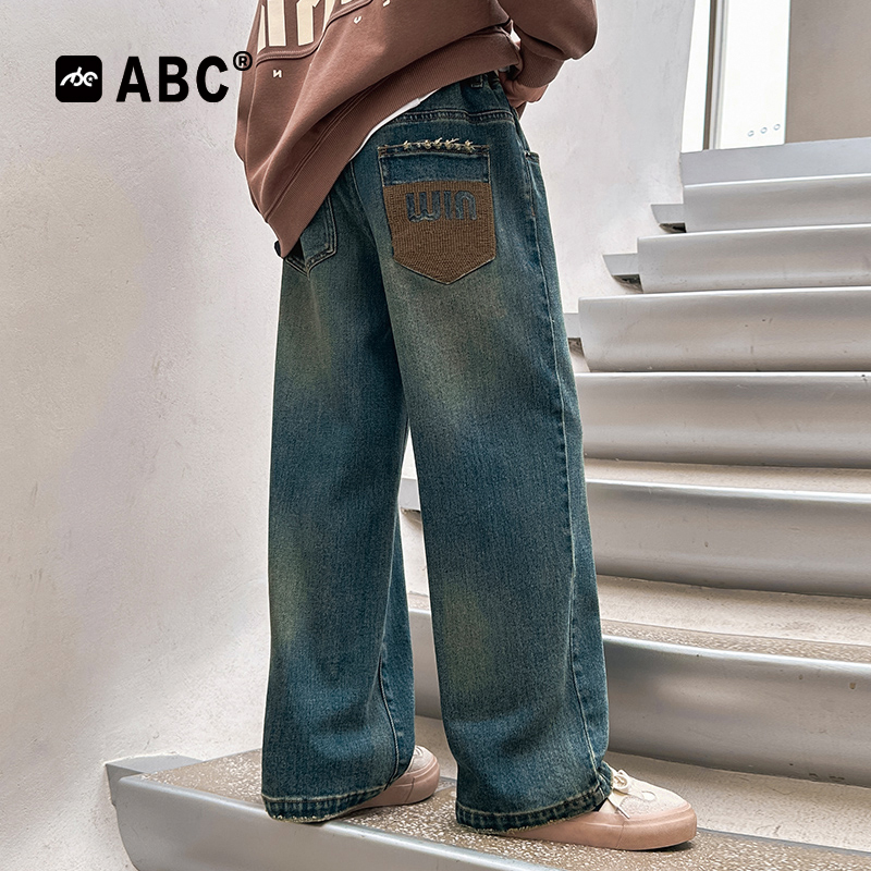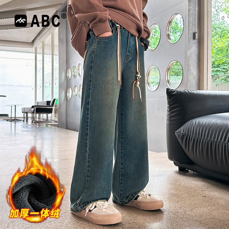 中大童阔腿裤 ABC男童秋冬牛仔裤 直筒裤 男孩加绒加厚韩版 2025新款