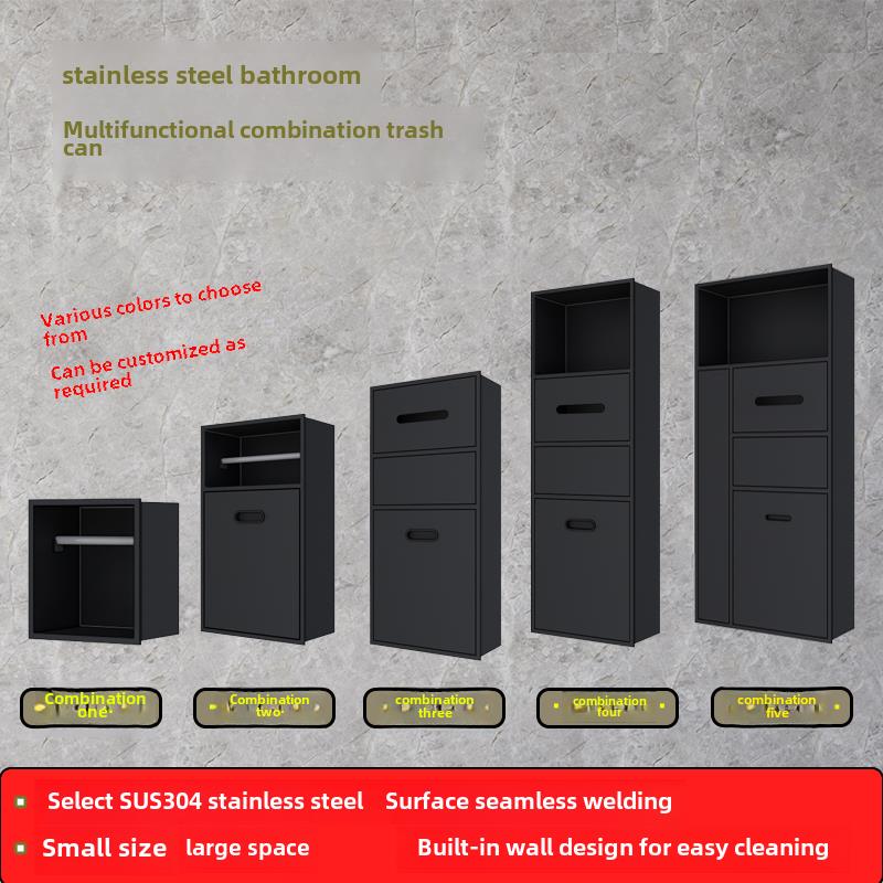 不锈钢壁龛嵌入式 置物架带垃圾桶卫生间马桶金属壁柜白色成品定制
