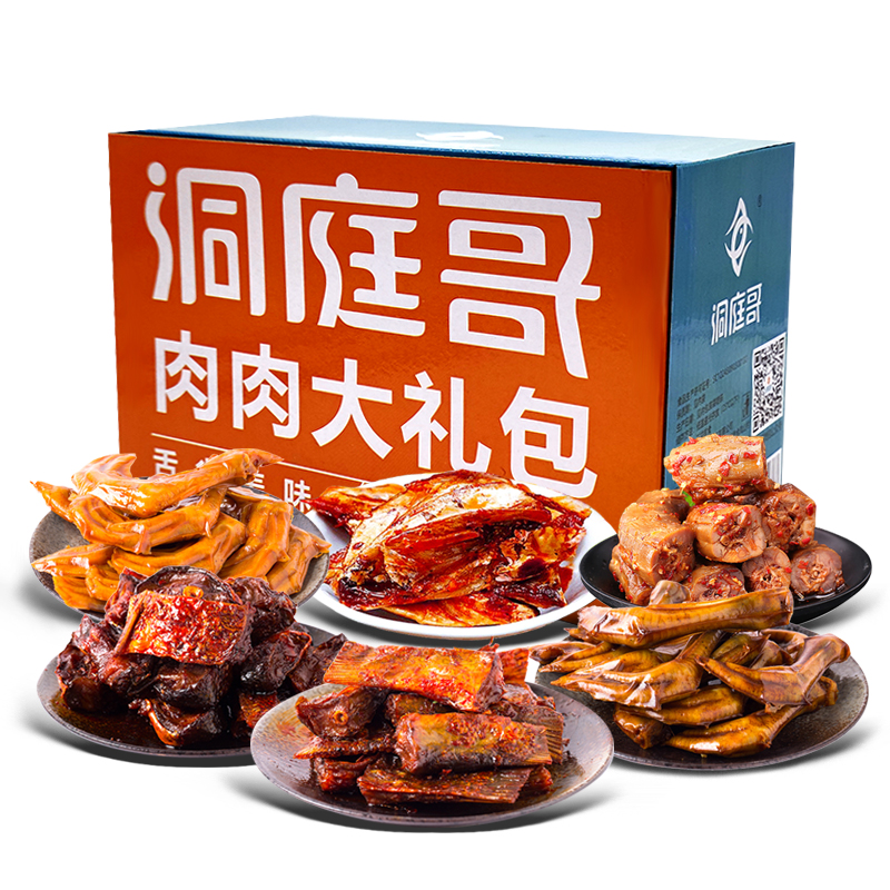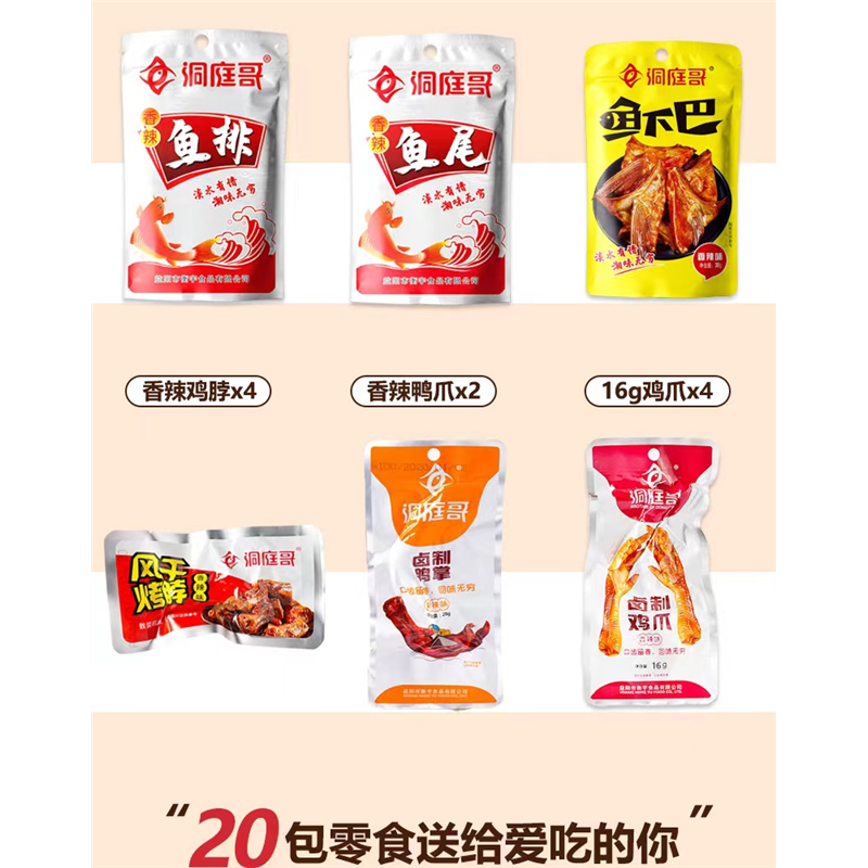 洞庭哥礼盒装 零食大礼包鱼排鱼尾鸭掌鸡爪鸡脖鱼下巴18包休闲食品