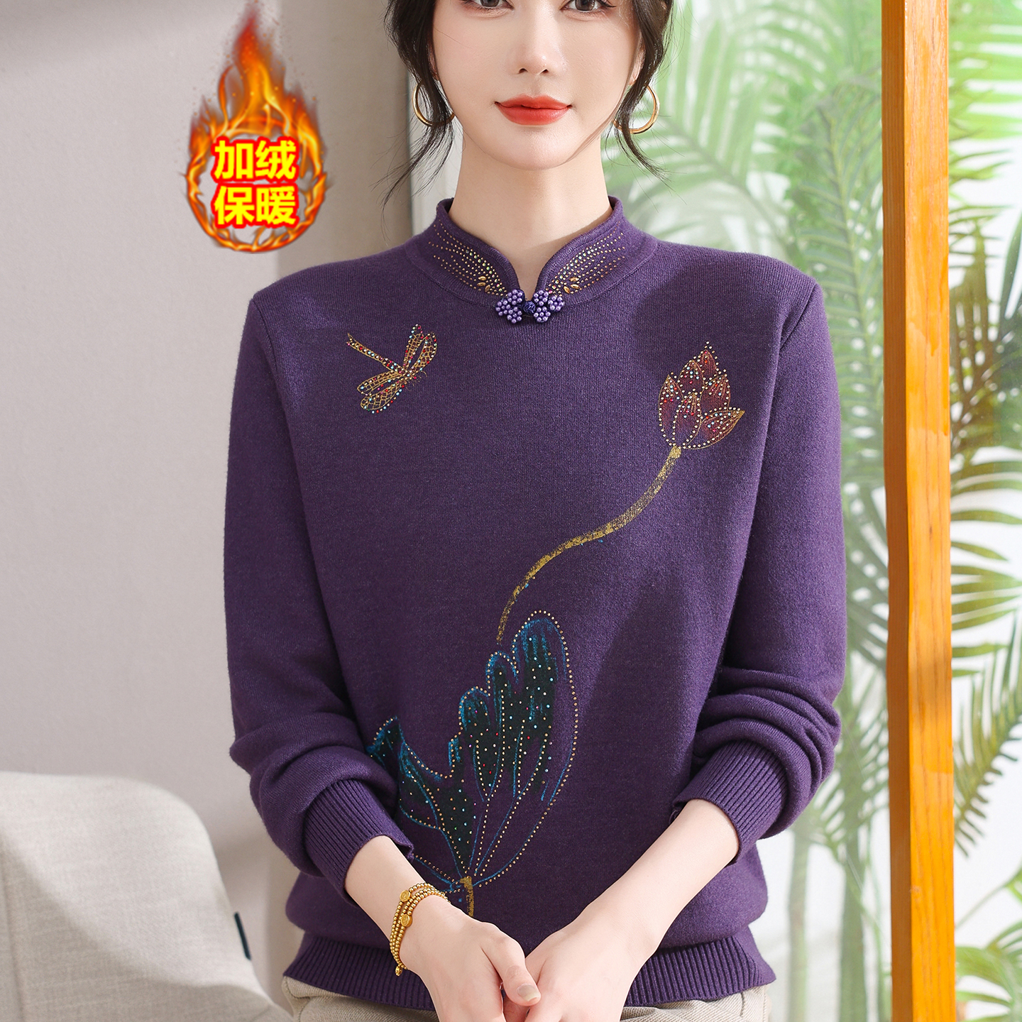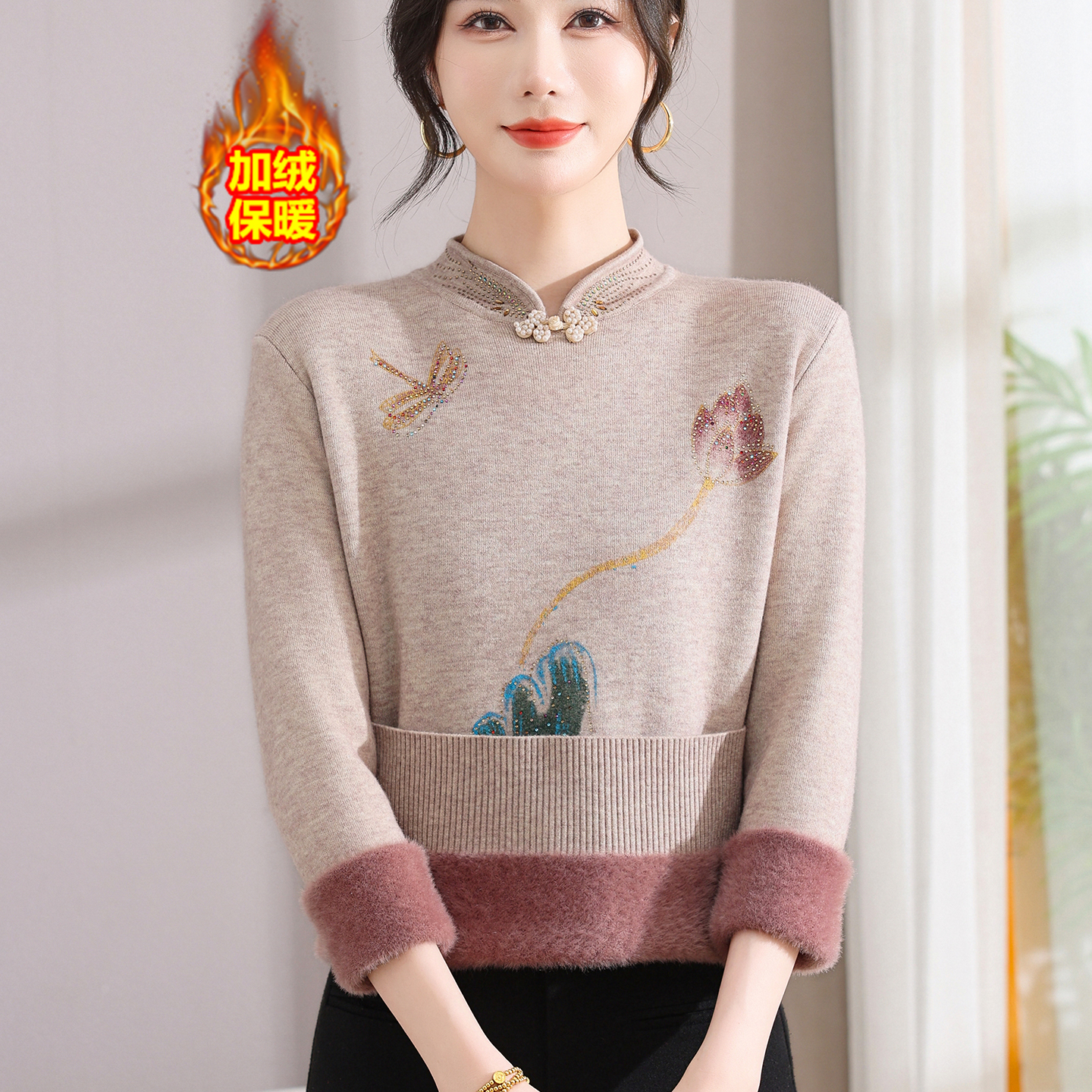 中老年人女装 加绒毛衣打底衫 秋冬保暖上衣服 2025新款 洋气妈妈冬季