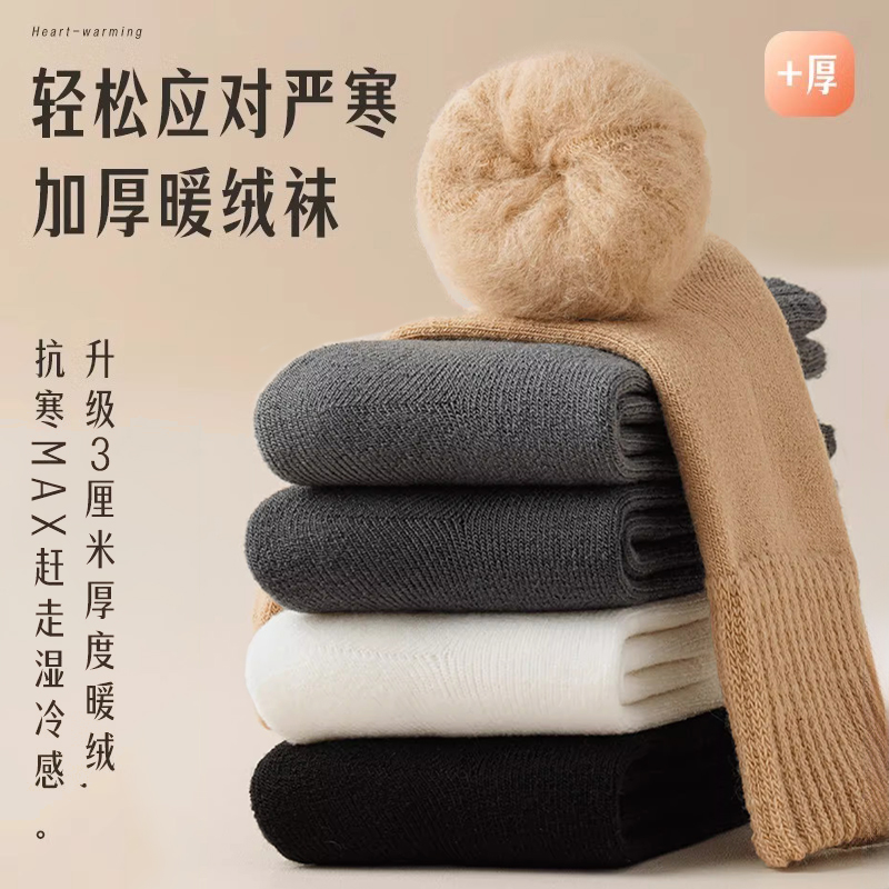 超厚羊毛袜子男秋冬加厚加绒羊绒袜毛绒保暖中筒棉袜高筒冬季 长袜