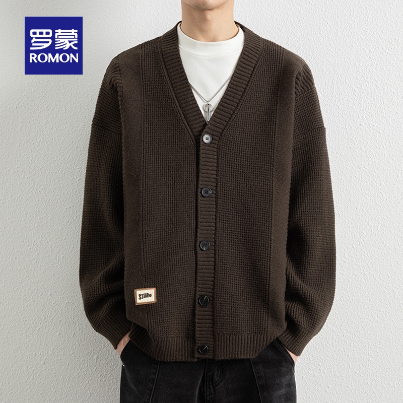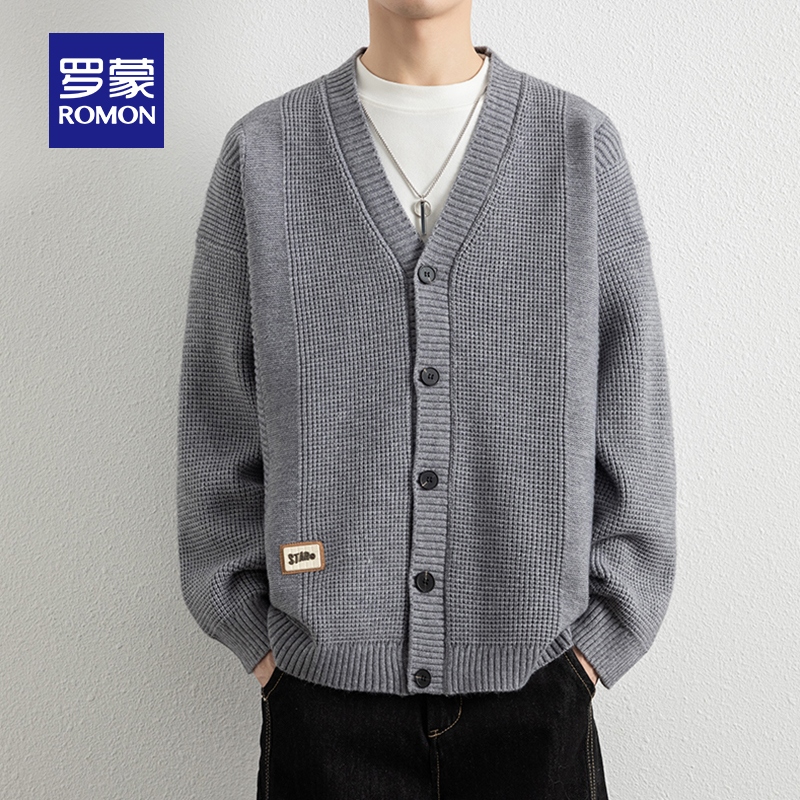 新款 罗蒙男士 2025秋季 V领针织开衫 百搭休闲舒适保暖外套 潮流时尚
