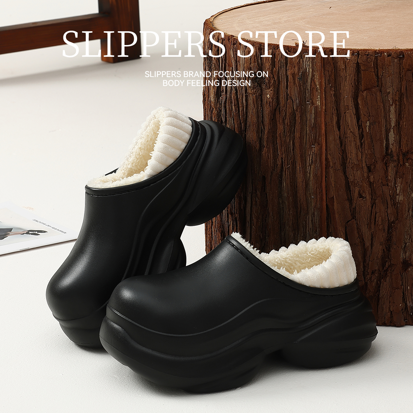 D1P1DAH5预 加毛厚底包头休闲鞋 方枪枪同款 百丽厚切吐司勃肯拖鞋