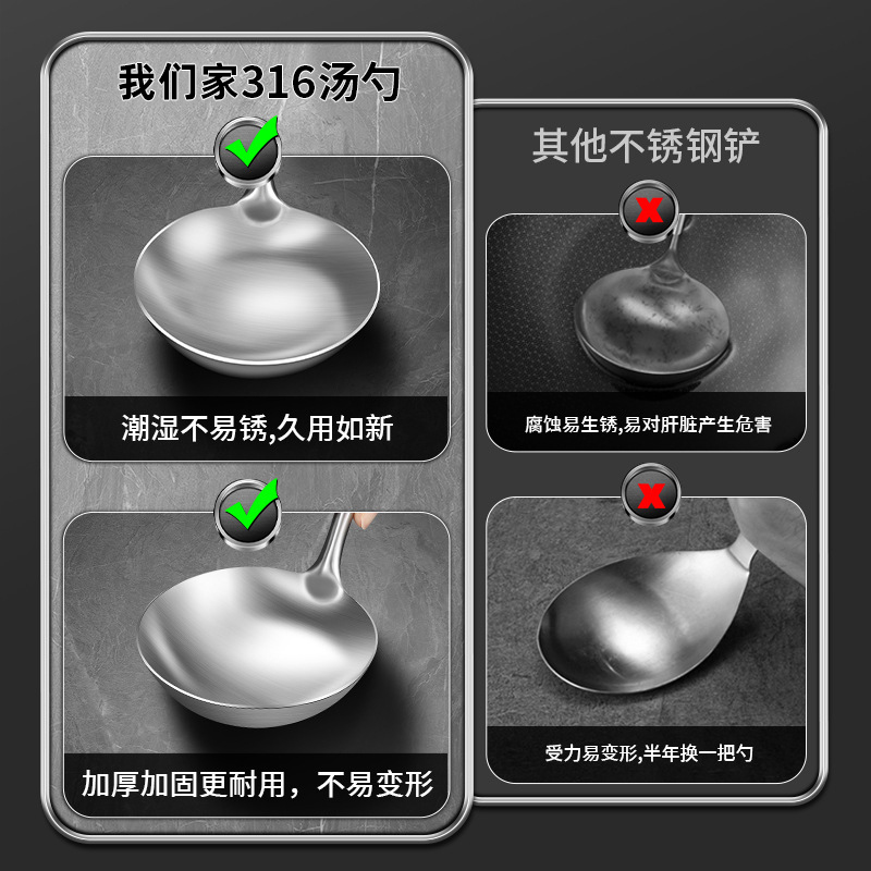 汤勺316不锈钢家用大号盛汤防烫勺子厨具锅铲加厚长木柄炒勺铲子