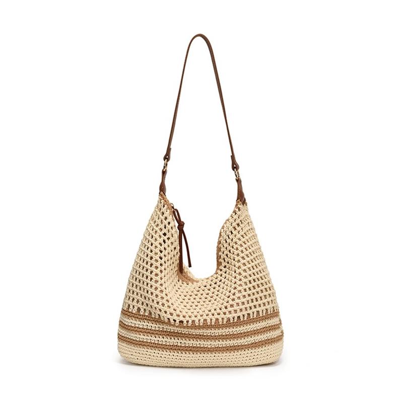 慵懒风法式 棉线编织包2025新款 镂空网格大容量海边单肩沙 夏季 新品