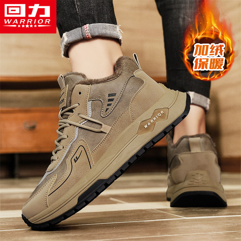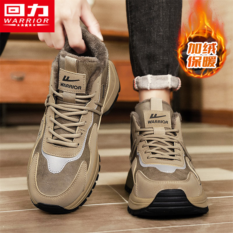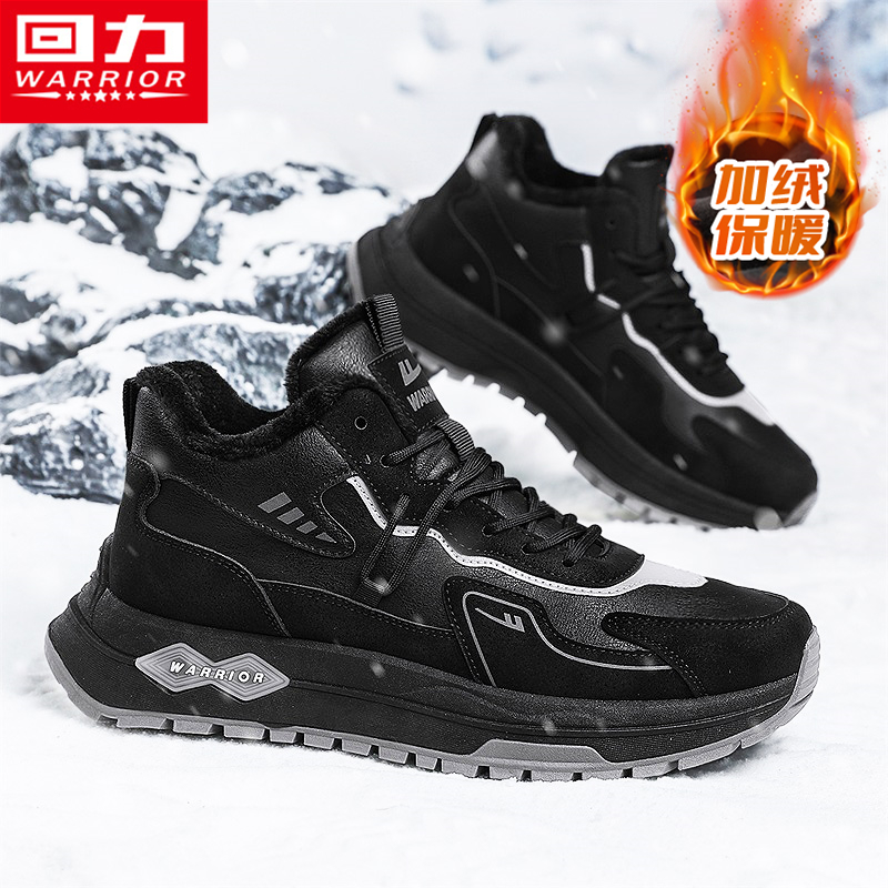 加厚运动休闲鞋 安踏行者 新款 男2025冬季 加绒保暖高帮皮面大棉鞋