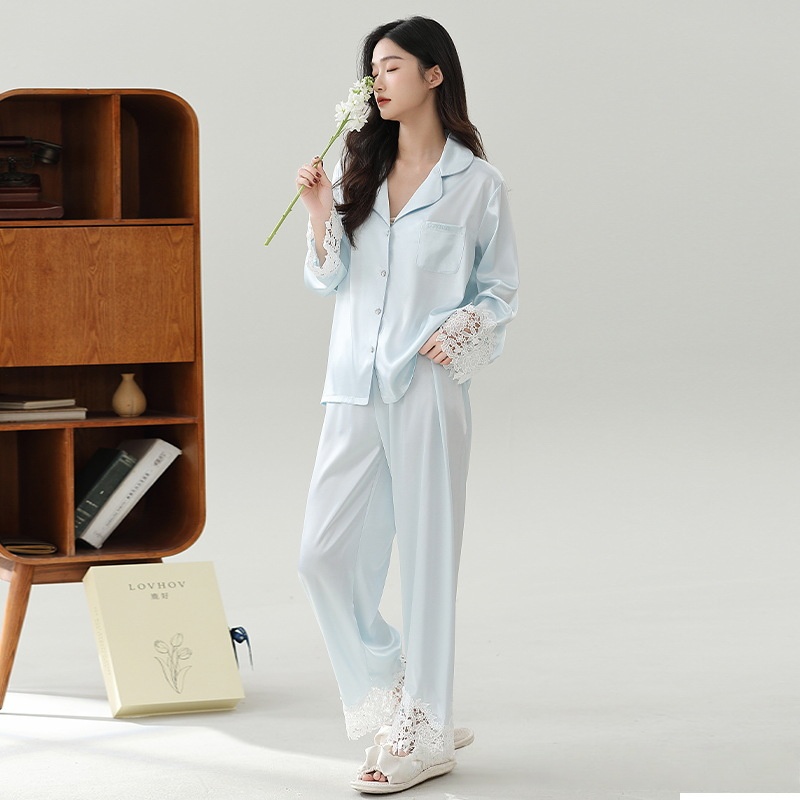 四季 套装 款 长裤 男女士条纹家居服 冰丝长袖 乐姿梦情侣睡衣春夏秋季