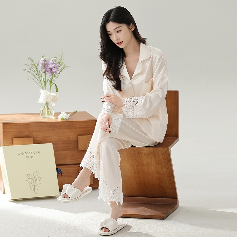 2025年新款 空气棉睡衣女春秋加厚纯棉家居服秋冬季 夹层薄夹棉套装