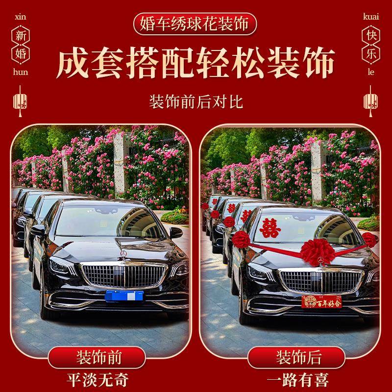 婚车装 饰车头花大红花球新交车绣球花汽车主车结婚花车花车队拉花