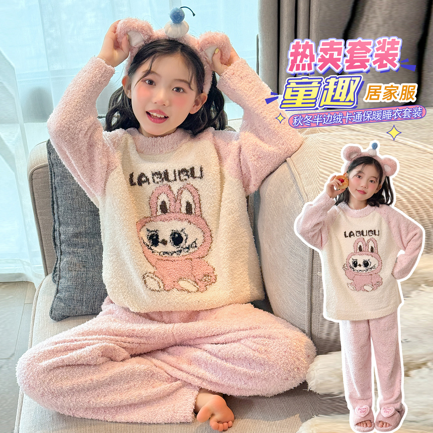 加大码 套装 家居服春秋 秋冬季 芬腾女士睡衣空气棉夹层纯棉加厚长袖
