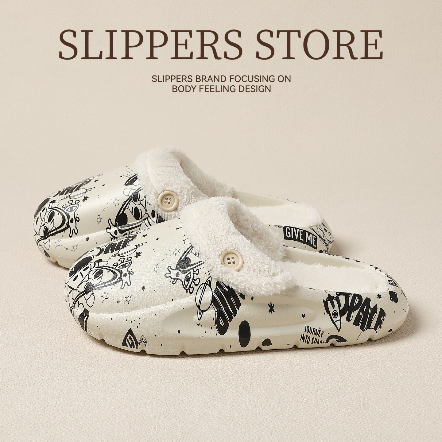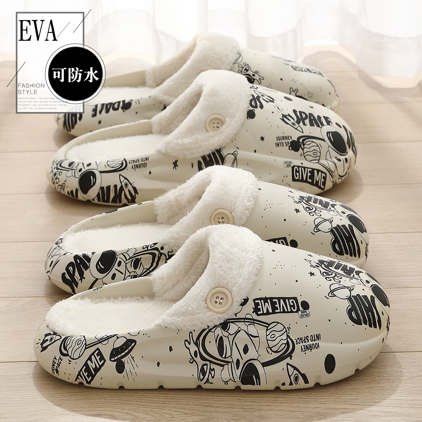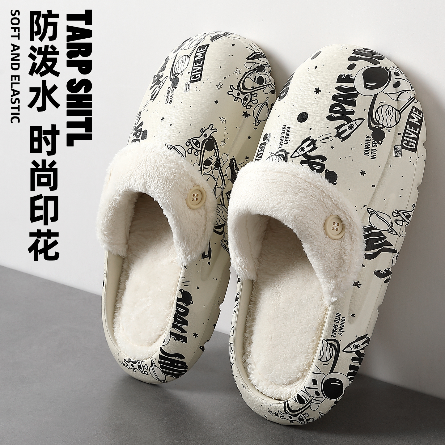 外穿2025新款 秋冬季 室内家居厚底保暖毛绒棉拖 男款 防水防滑棉拖鞋