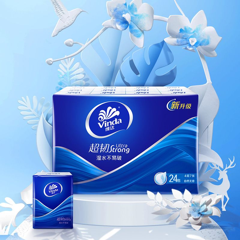 维达超韧手帕纸4层24包经典 纸抽 无香系列迷你小包纸巾便携随身装