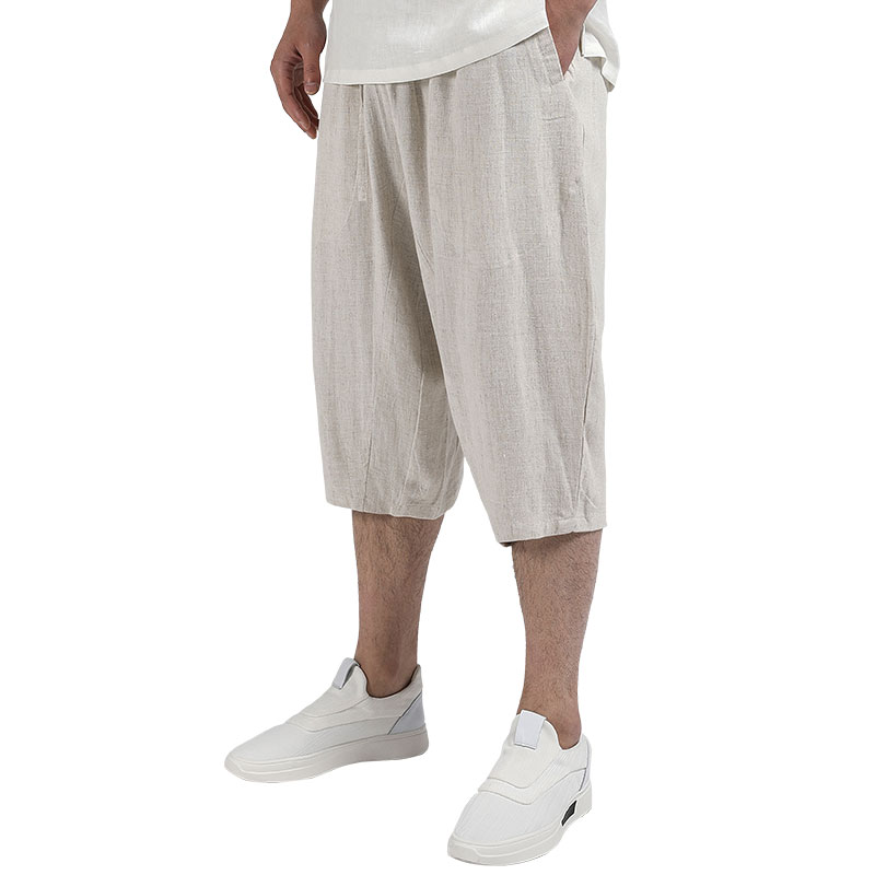 男中国风裤 玄笙夏季 棉麻短裤 男宽松直筒休闲哈伦裤 子男 亚麻七分裤