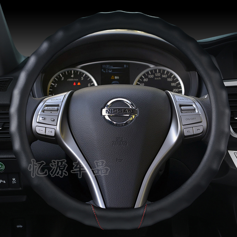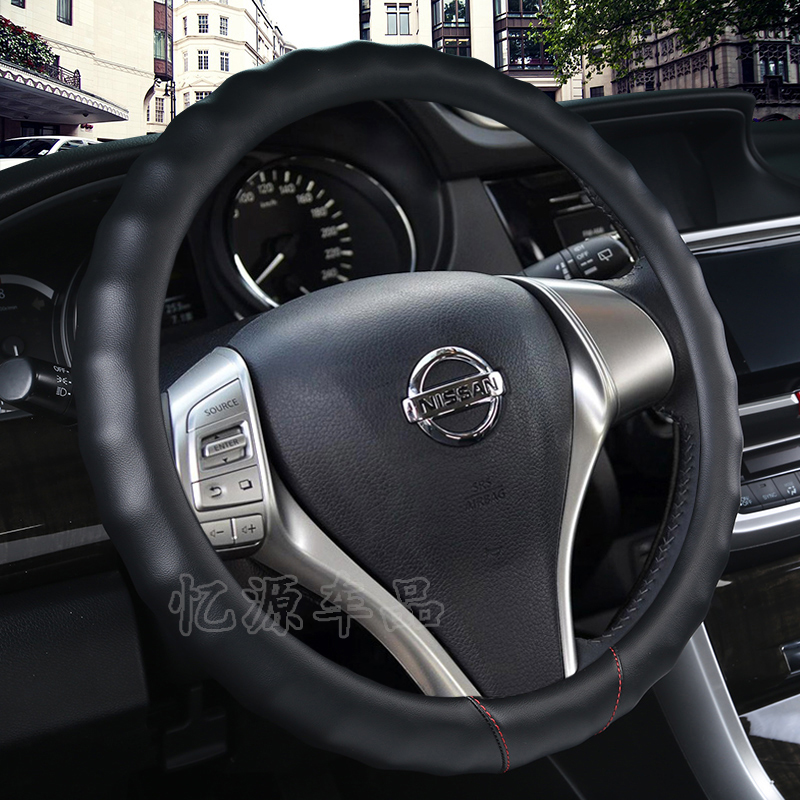 汽车方向盘套防滑吸汗超薄方向盘D型把套透气四季 通用真皮薄款