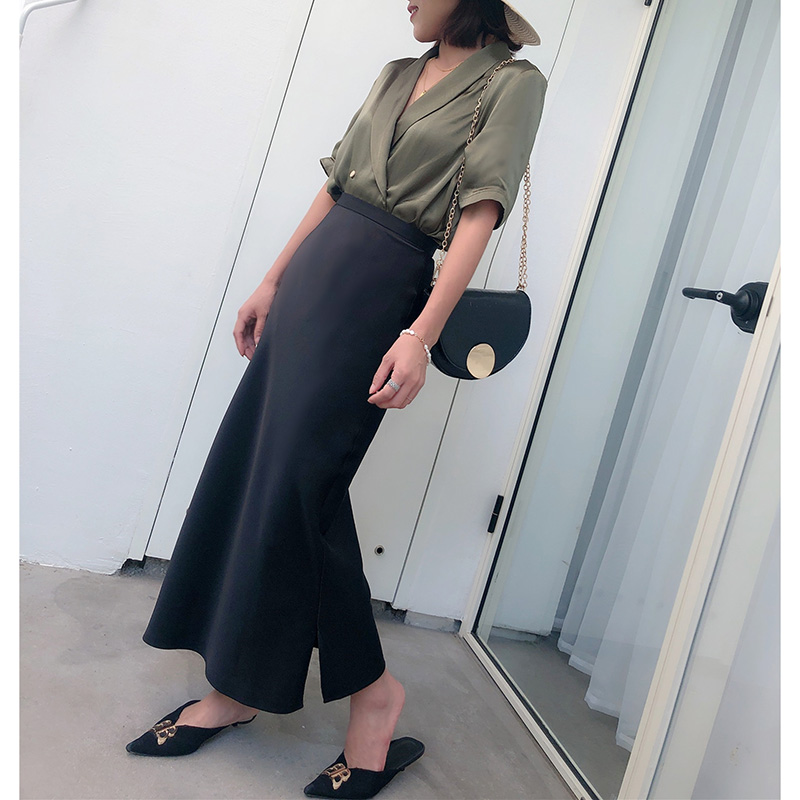 半裙a字小个子包臀裙 中长款 高腰开叉牛仔半身裙女2025年新款 夏季