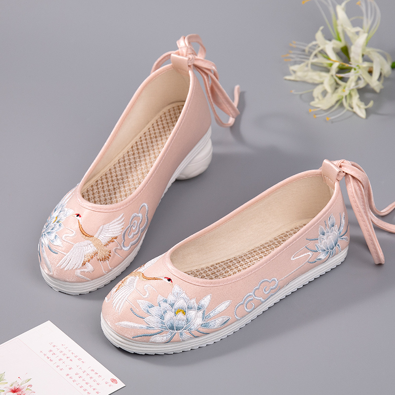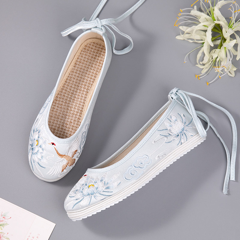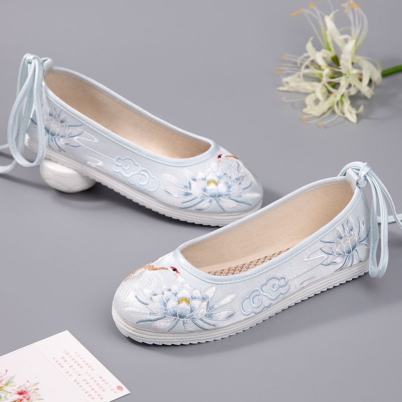 女古风汉服配鞋 春夏圆头汉服鞋 淡雅平底绣花鞋 古装 女 汉鞋 百钦