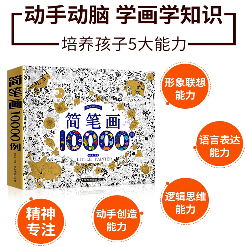 宝宝画画本启蒙益智绘画手绘本幼儿园学画画入门小学生3 12岁初学者美术大全涂色书 儿童画画教材简笔画10000例升级加厚版
