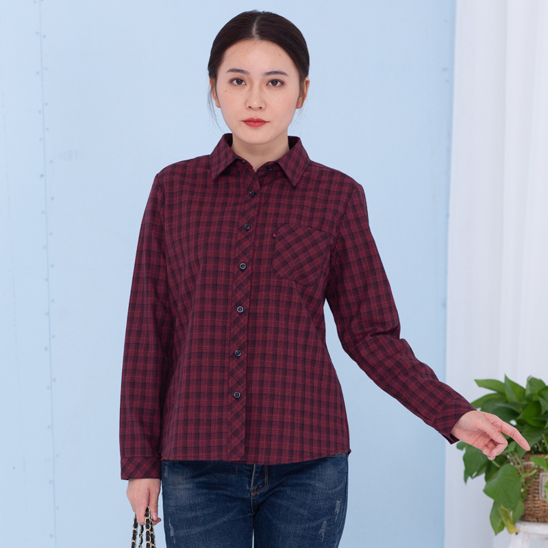上衣ZH 富木新品 装 全棉女士上衣休闲衬衣中年大码 201E9 格子衬衫