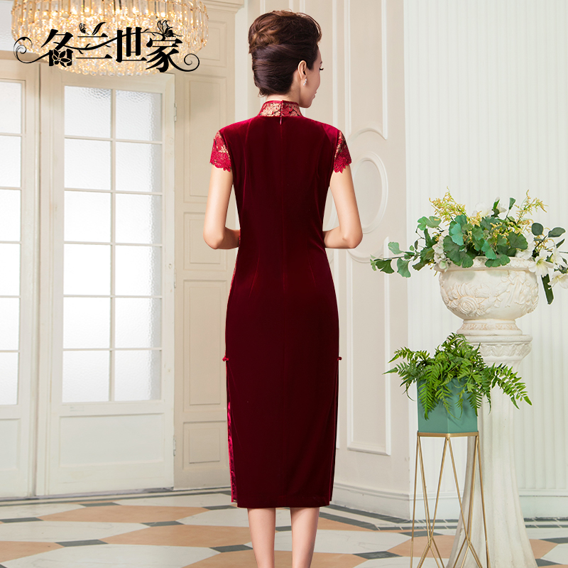 名兰世家婚礼妈妈旗袍礼服高贵丝绒蕾丝改良连衣裙长款 原创设计