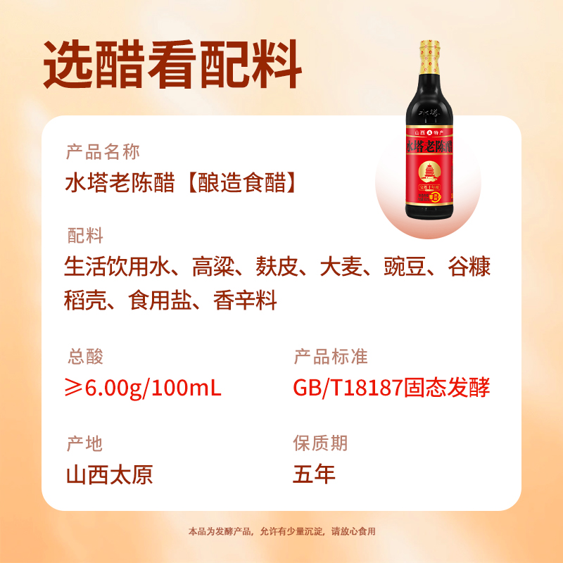 水塔老陈醋山西醋陈醋十陈酿6度饺子醋小瓶500ml