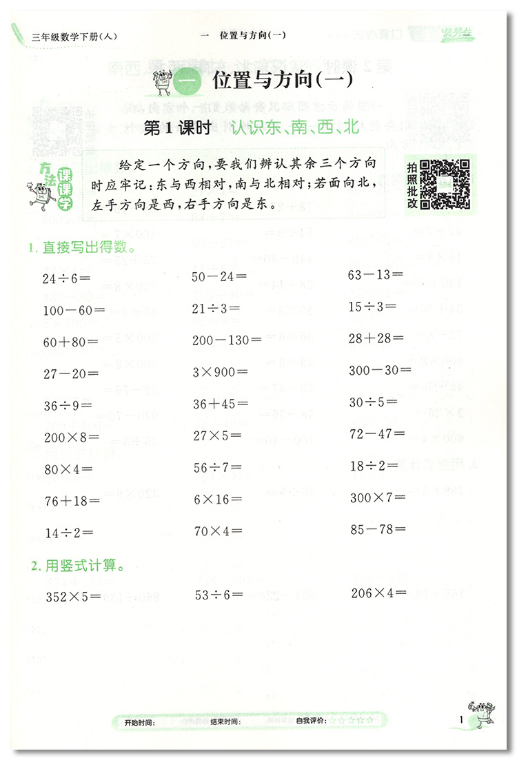 2025春优秀生口算心法三3年级下册数学人教算法学习与运用课堂练习册口算心算速算能力测试题口算天天练思维解题方法应用题卡