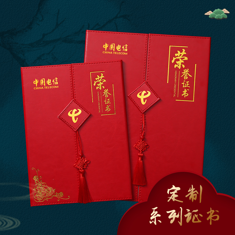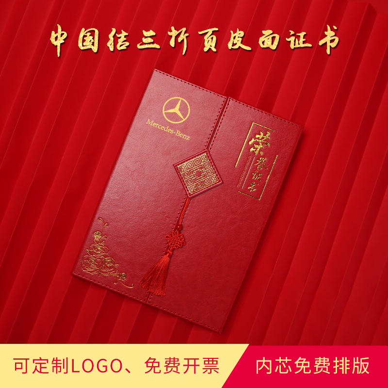 高档仿皮A4三折页荣誉证书聘书外壳颁奖奖状皮面捐赠证书套封面定制烫金LOGO内芯打印结业获奖证书制作