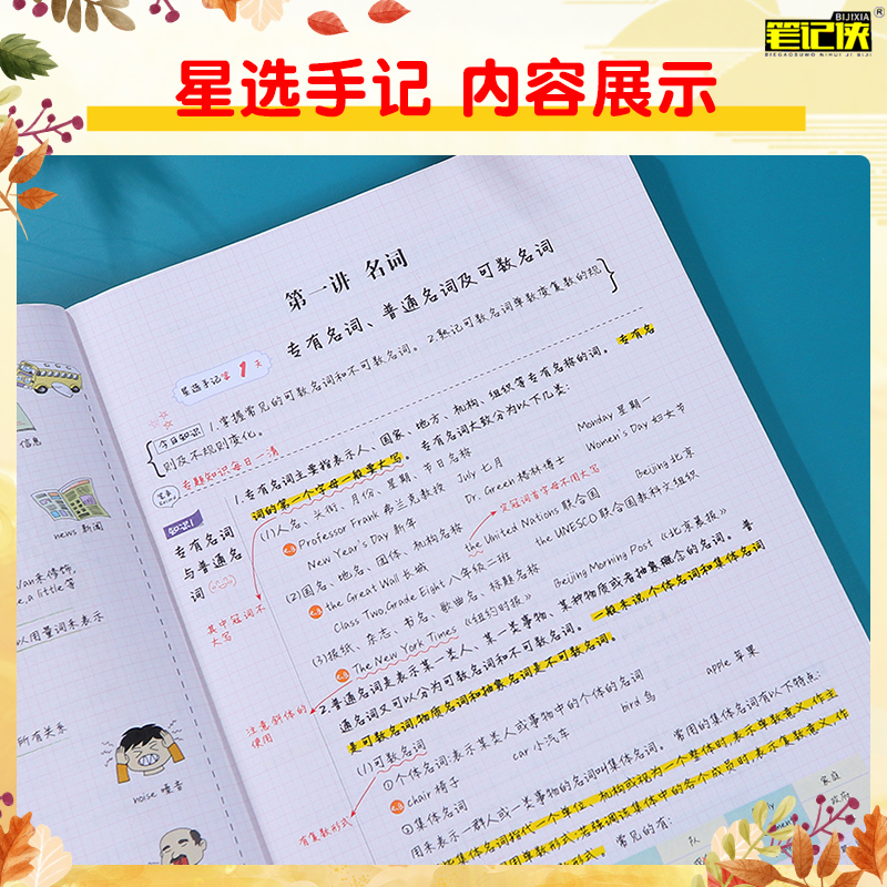 中考英语复习资料教辅导书籍 训练习册思维导图知识大全初一二三年级上下册七八九年级人教版 2025新版 星选手记初中英语笔记侠手记