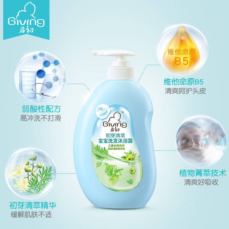 启初初芽清萃儿童洗发沐浴露620ml 婴儿宝宝洗发水沐浴露二合一