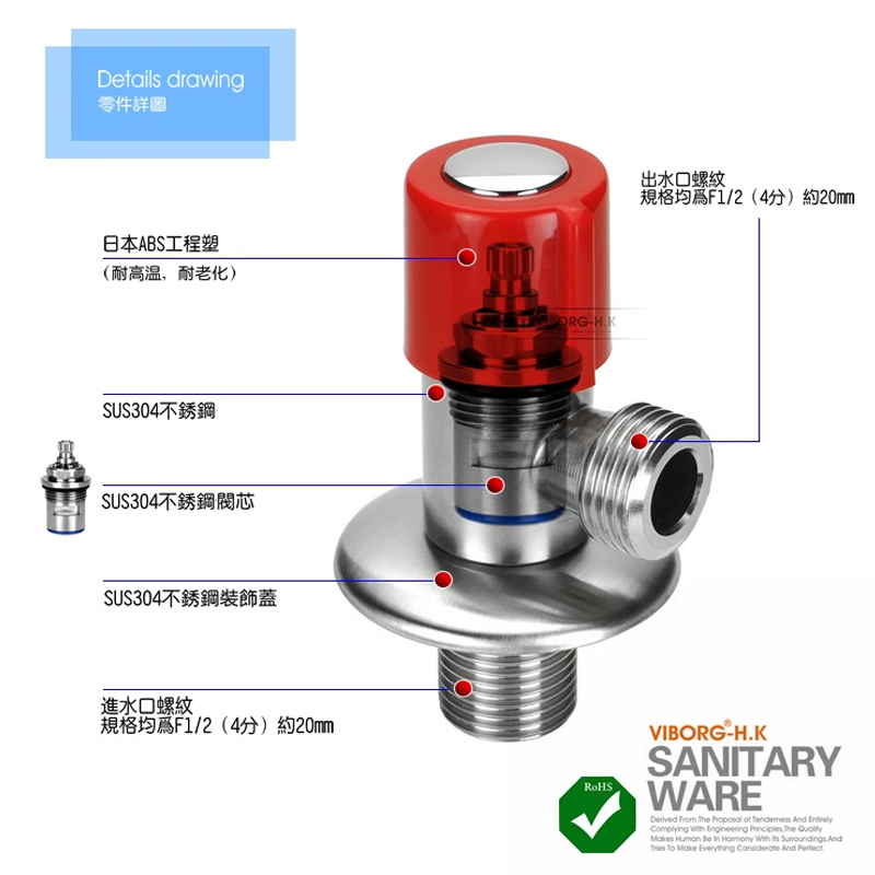 V域堡加长304不锈钢角阀加大流量马桶三角阀止水开关通用阀进水阀