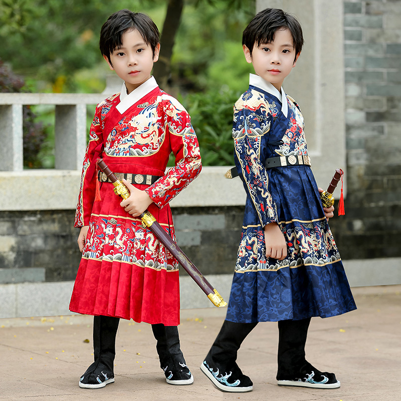 中秋节走秀演出服 锦衣卫帅气男孩飞鱼服唐装 儿童汉服新款 男童古装