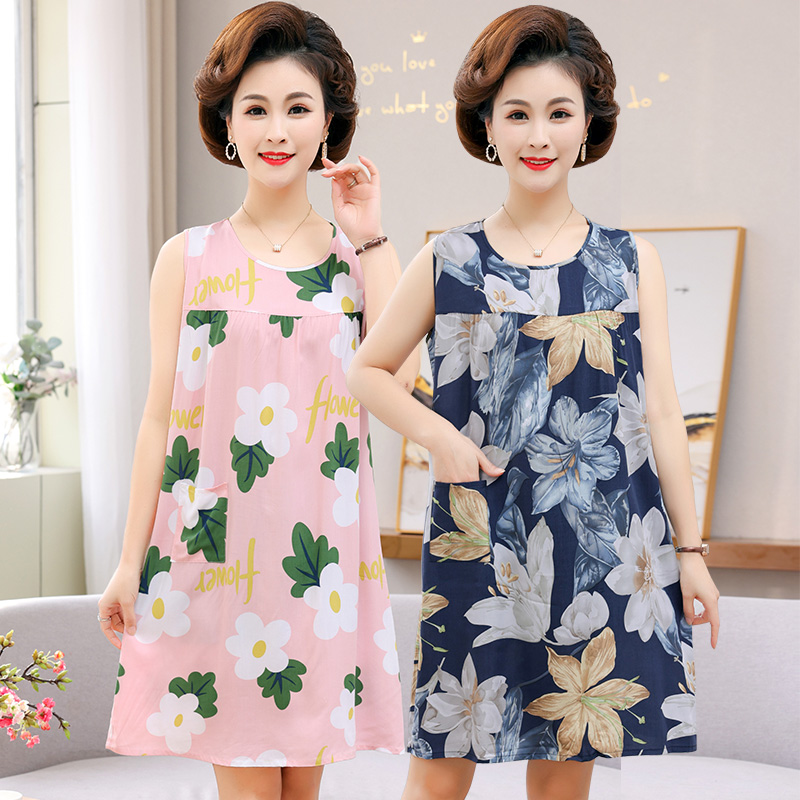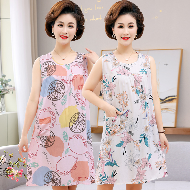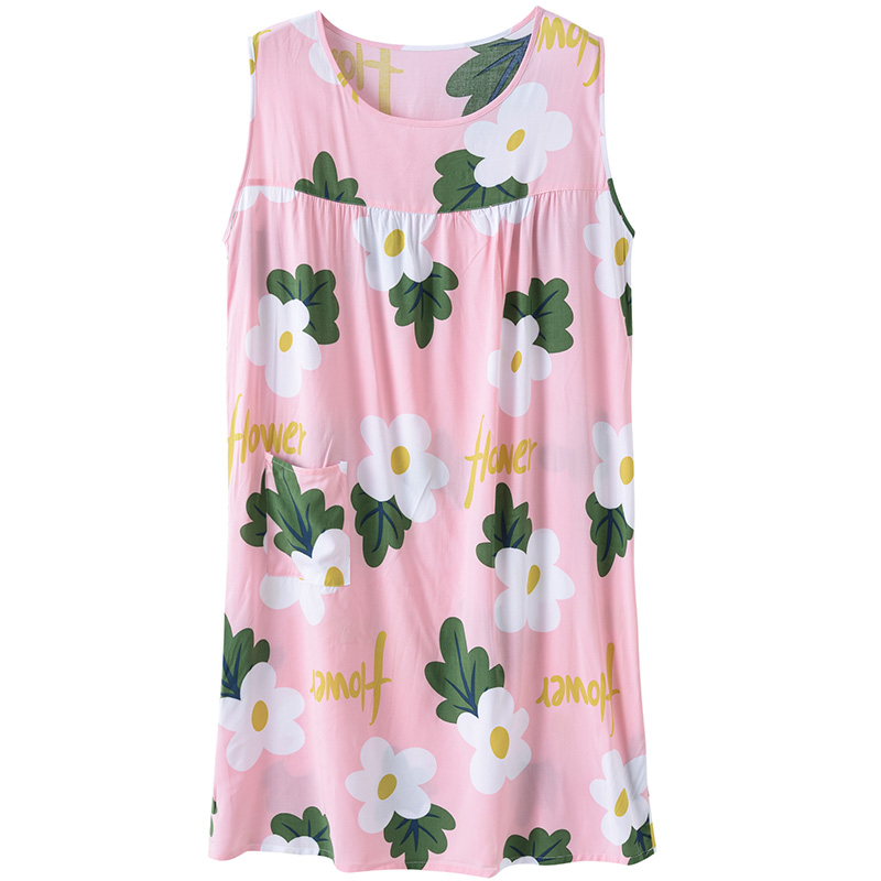 睡衣夏季 韩版 加大码 棉绸睡裙女士短袖 人造棉宽松舒适居家服 加长款