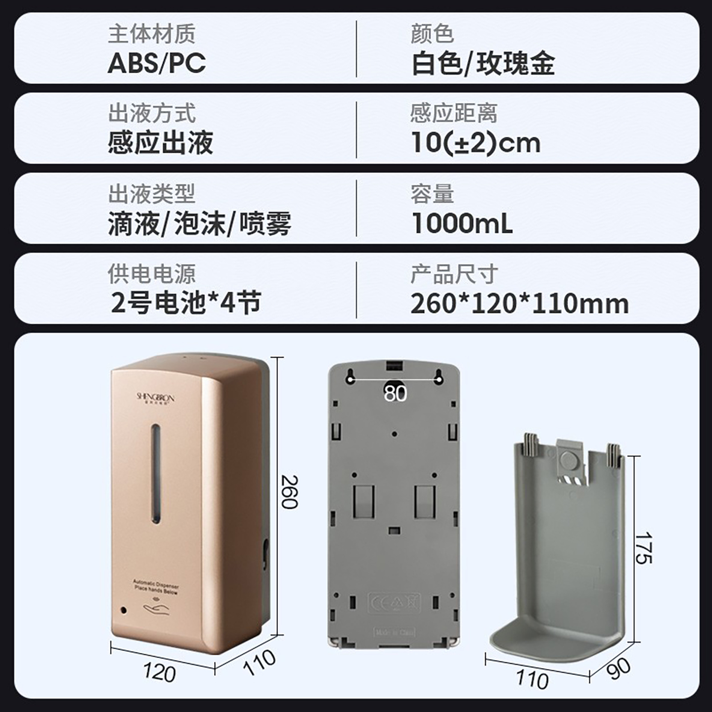 自动洗手液机壁挂式 智能感应泡沫皂液器免打孔电动酒精免洗喷雾器
