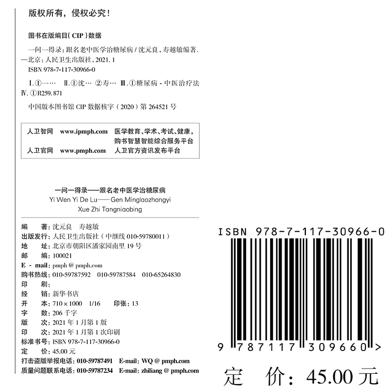 一问一得录跟名老中医学治糖尿病人民卫生出版 良寿越敏9787117309660 社沈元