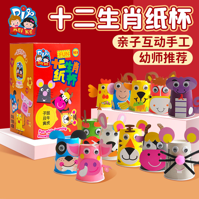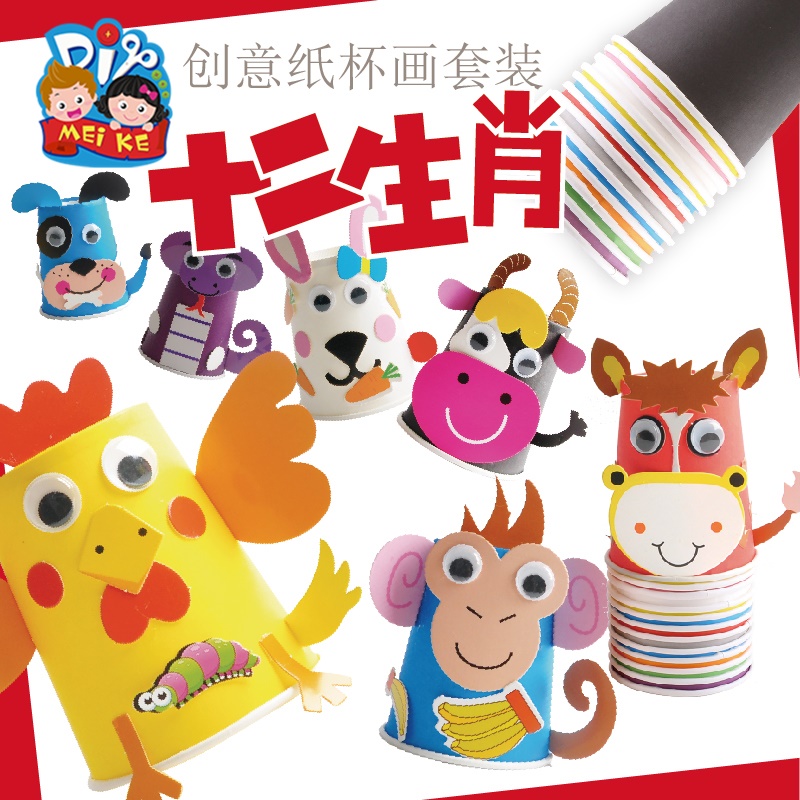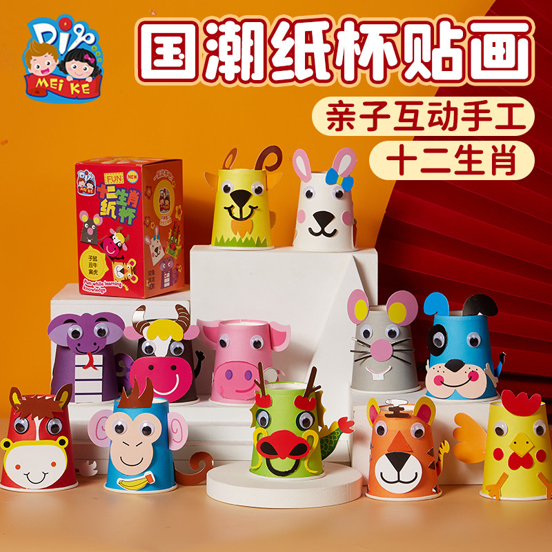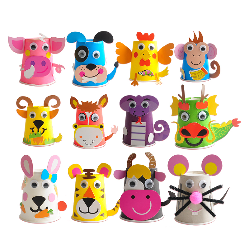 十二生肖彩色纸杯贴画手工diy儿童创意粘贴制作玩具幼儿园材料包
