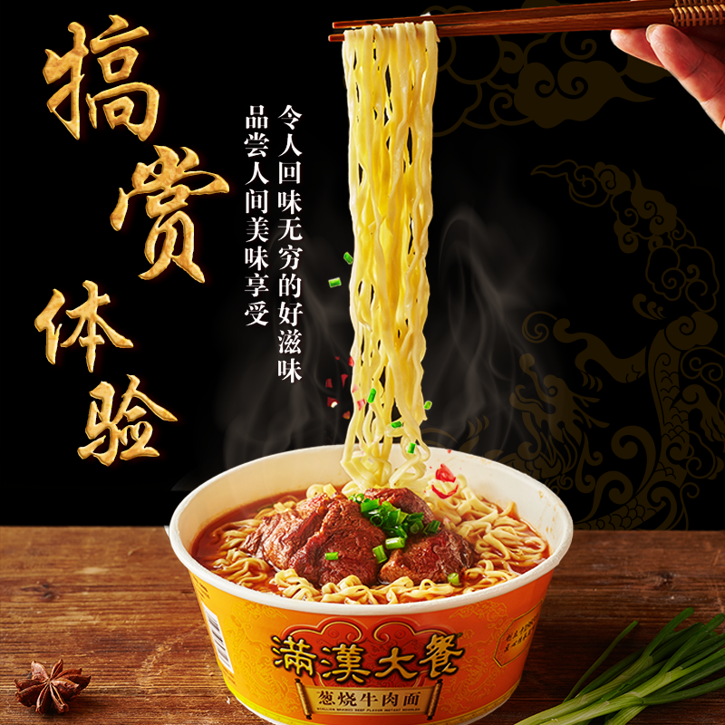 满汉大餐泡面桶装 8盒多口味牛肉鲜煮面方便面条整箱批发夜宵速食