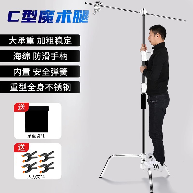 摄影魔术腿灯架c型支架2.8米不锈钢三脚架专业影视旗板柔光纸横杆影棚闪光灯顶灯架横臂杆三角摄影灯架脚架