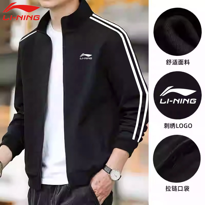 运动夹克男款 李宁外套女秋季 拉链卫衣美式 条纹长袖 情侣上衣连帽衫