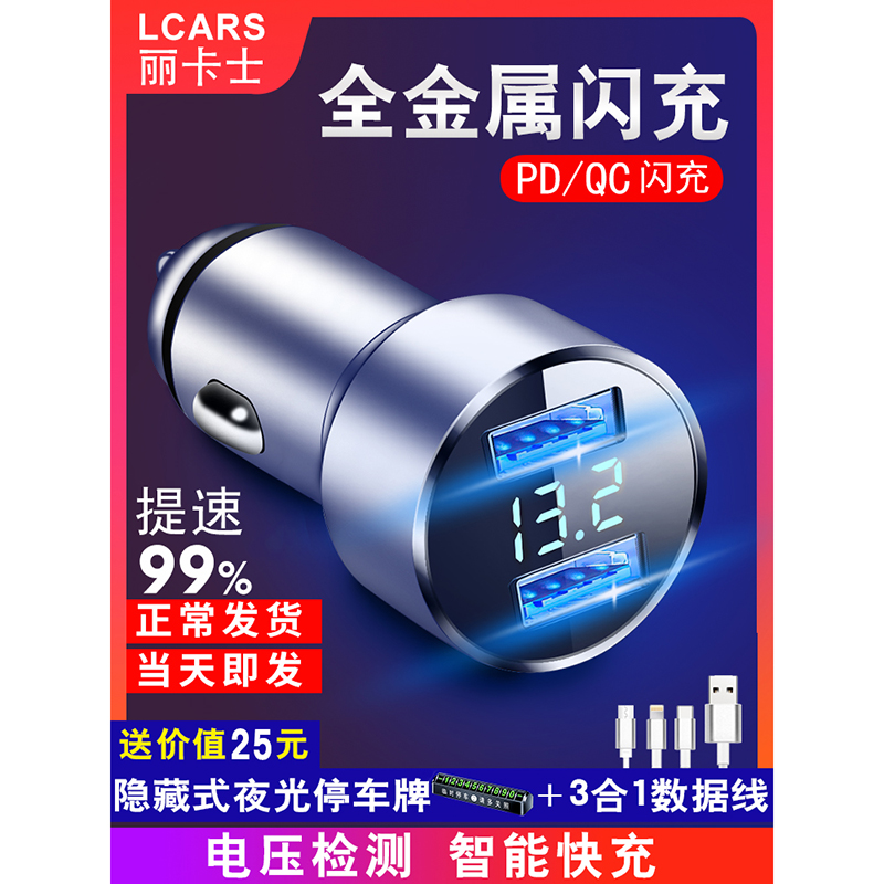 车载充电器手机超级快充点烟器一拖二转换插头快速车充插座汽车用