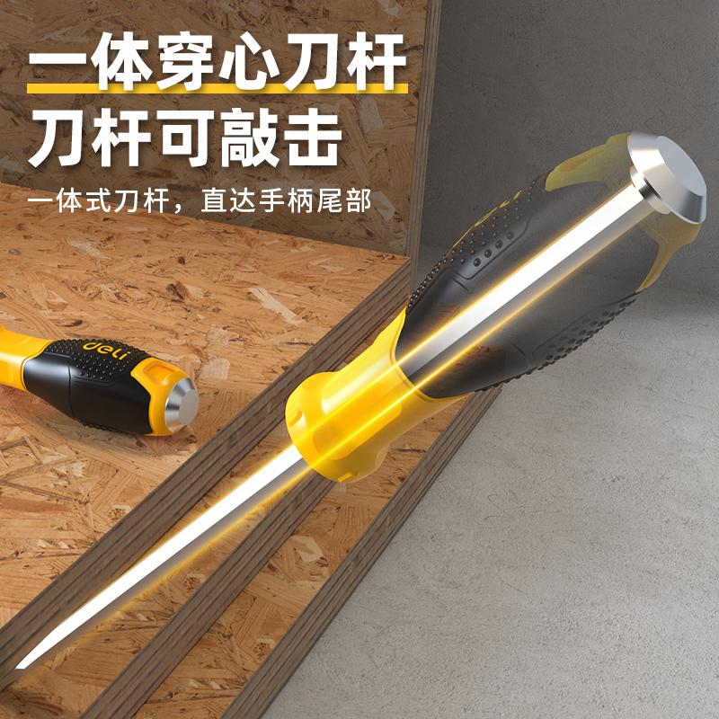 得力穿心螺丝刀通体可敲击超大号加粗加长平口十字一字改锥螺丝批