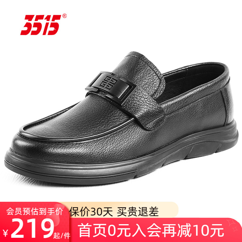 休闲皮鞋 新款 男士 软底一脚蹬真皮鞋 红蜻蜓男鞋 子男中年爸爸鞋 秋季