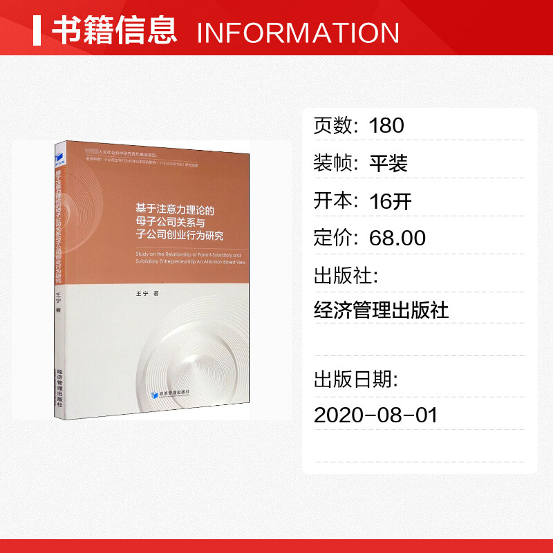 著 企业管理经管 经济管理出版 母子公司关系与子公司创业行为研究 社 图书籍 王宁 新华书店正版 基于注意力理论 励志