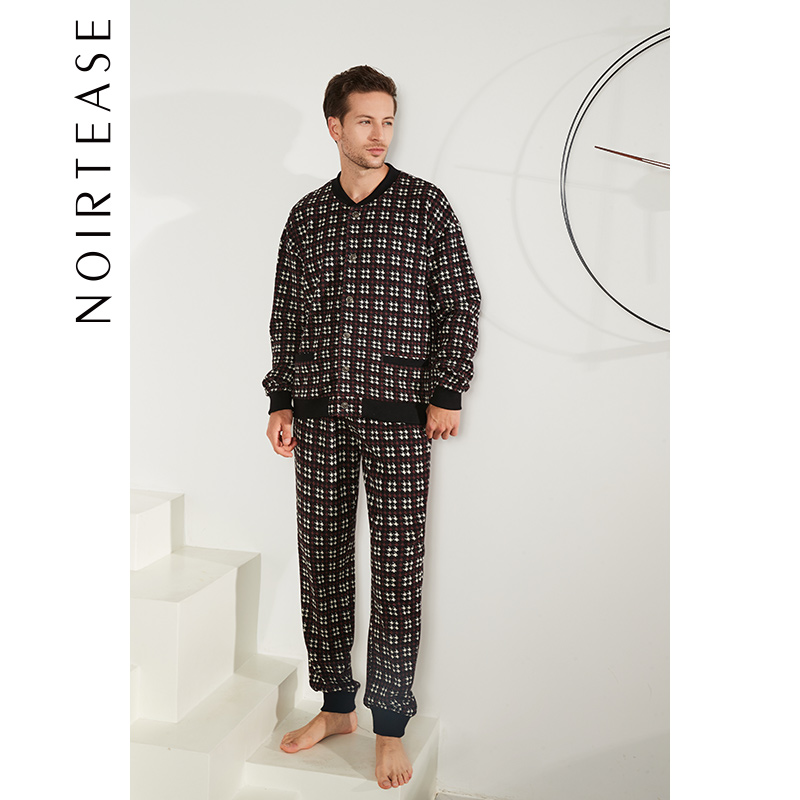 简约全棉高级感可外穿圆领家居服套装 春秋款 睡衣男士 猫人纯棉长袖