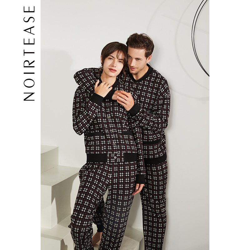 休闲家居服套装 男女同款 可出门 女长袖 安比斯情侣睡衣舒适纯棉秋季