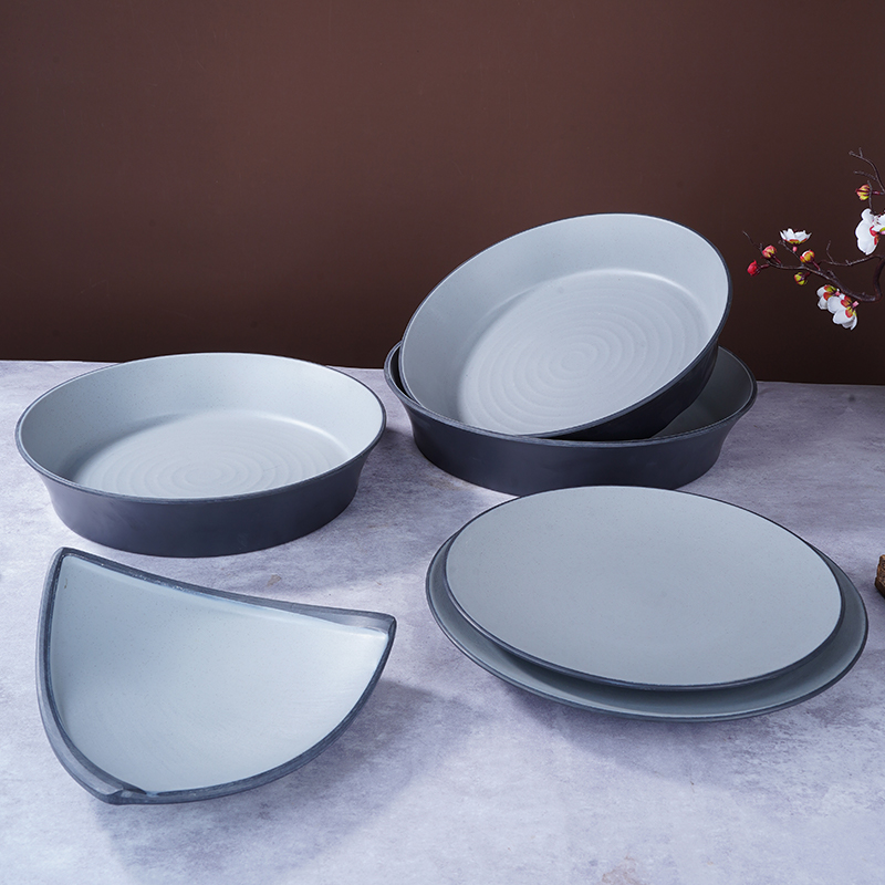 扬格灰黑岩创意西餐意面牛排盘圆形简约欧式 点心水果盘椭圆烤串盘