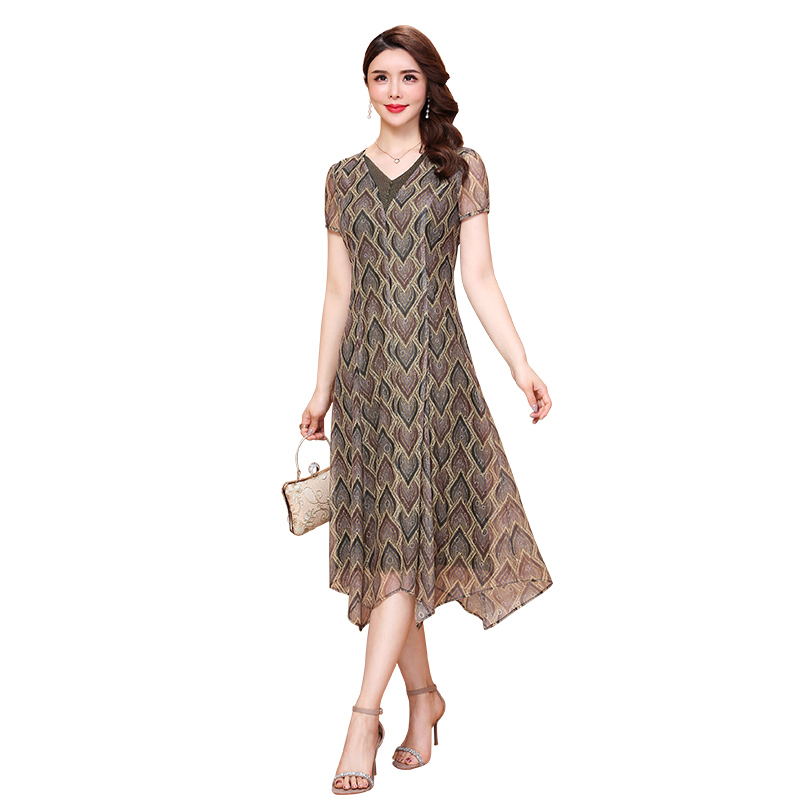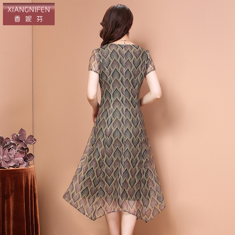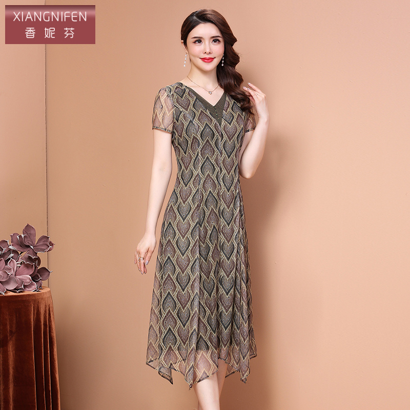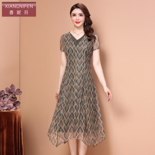 台湾纱裙子女 宽松短袖 香妮芬中年妈妈夏装 连衣裙高贵气质洋气大码