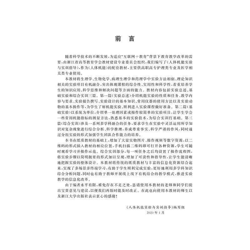 浙江大学出版 高等院校数字化融媒体特色教材 社 张玲 人体机能实验与实训指导