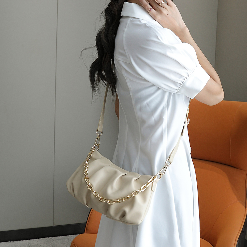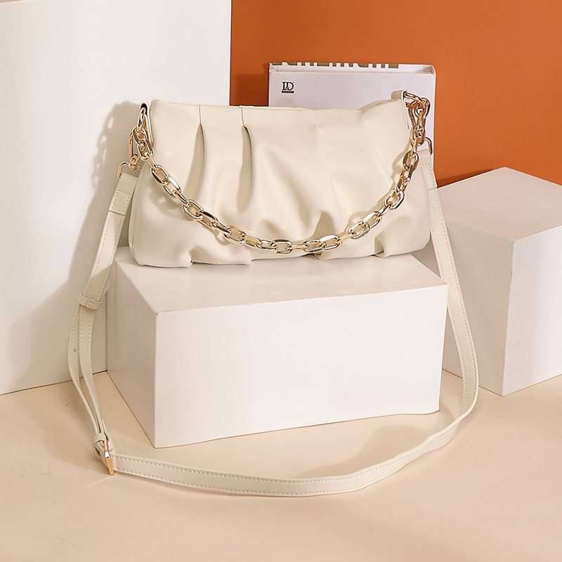 真皮单肩包女气质2025新款 软牛皮斜挎小包包百搭白色腋下包潮 时尚