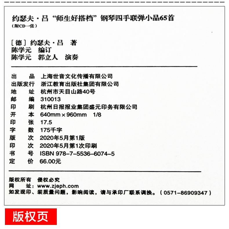 6级货同等程度使用 9787553660745 约瑟夫·吕 浙江教育出版 附光盘1张 有声版 审核1 钢琴四手联弹小品65首 师生好搭档 包邮 现货